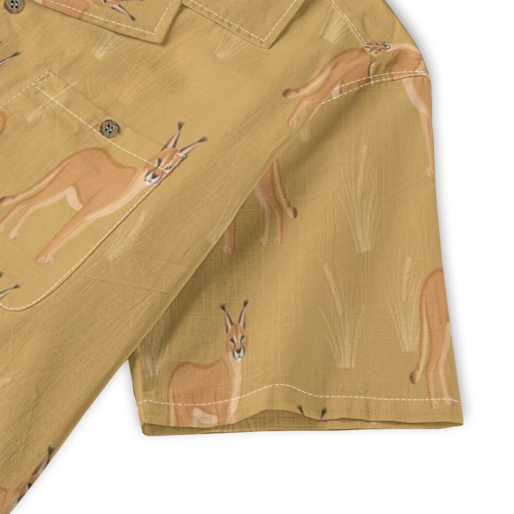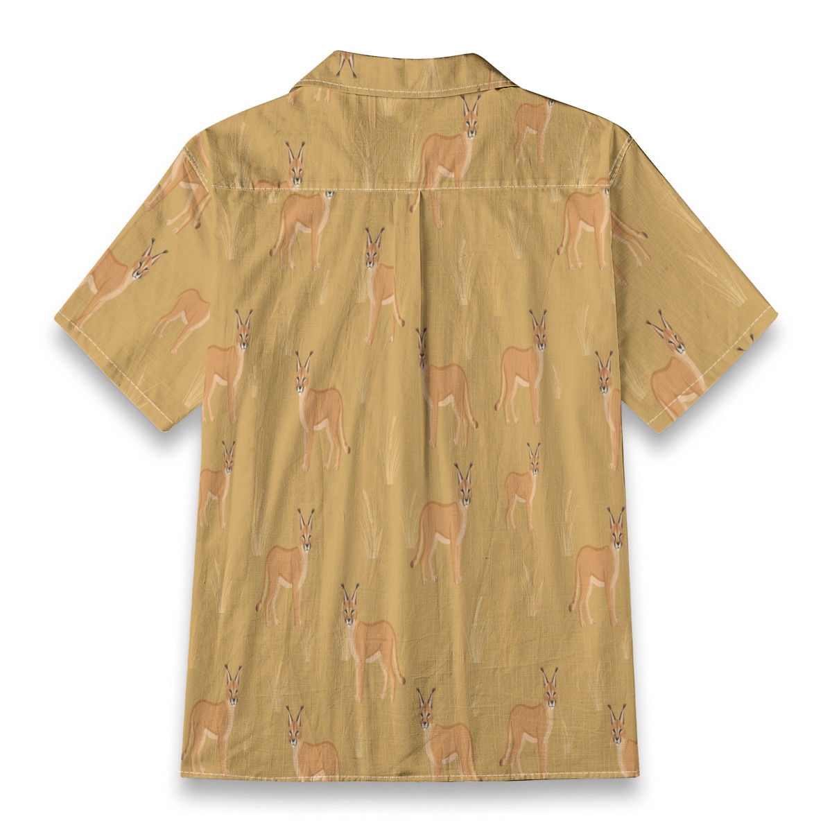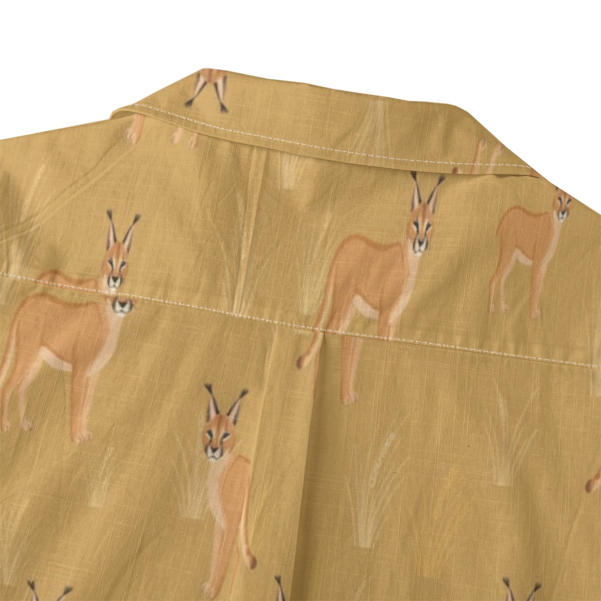 Elegant caracals blend into a warm desert-inspired pattern filled with soft golden tones. The evenly spaced layout creates a smooth rhythm, capturing a wild yet relaxed energy.
