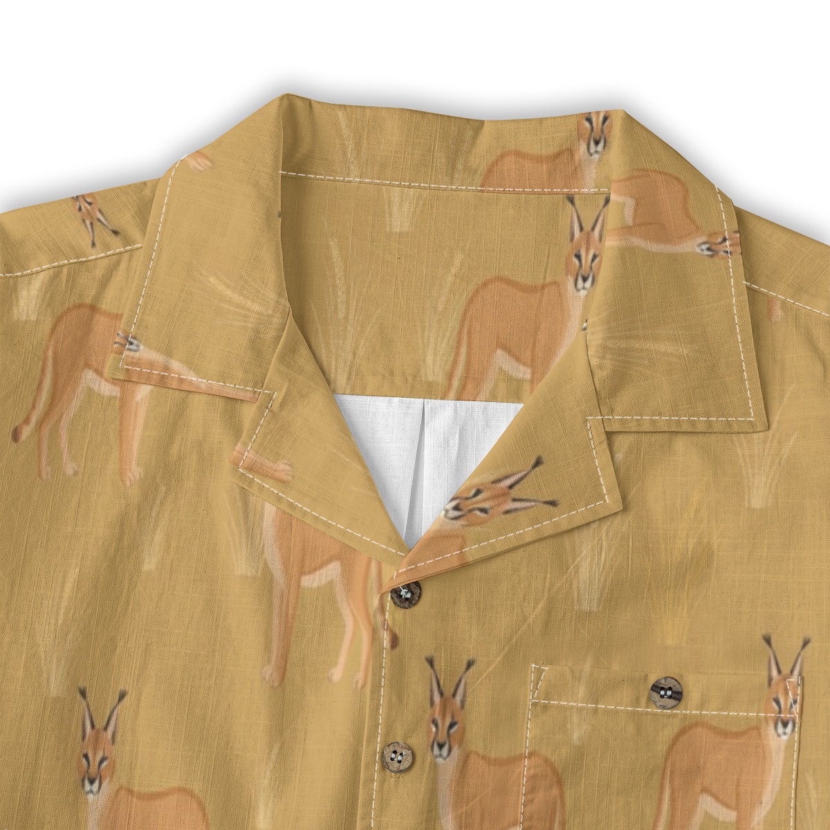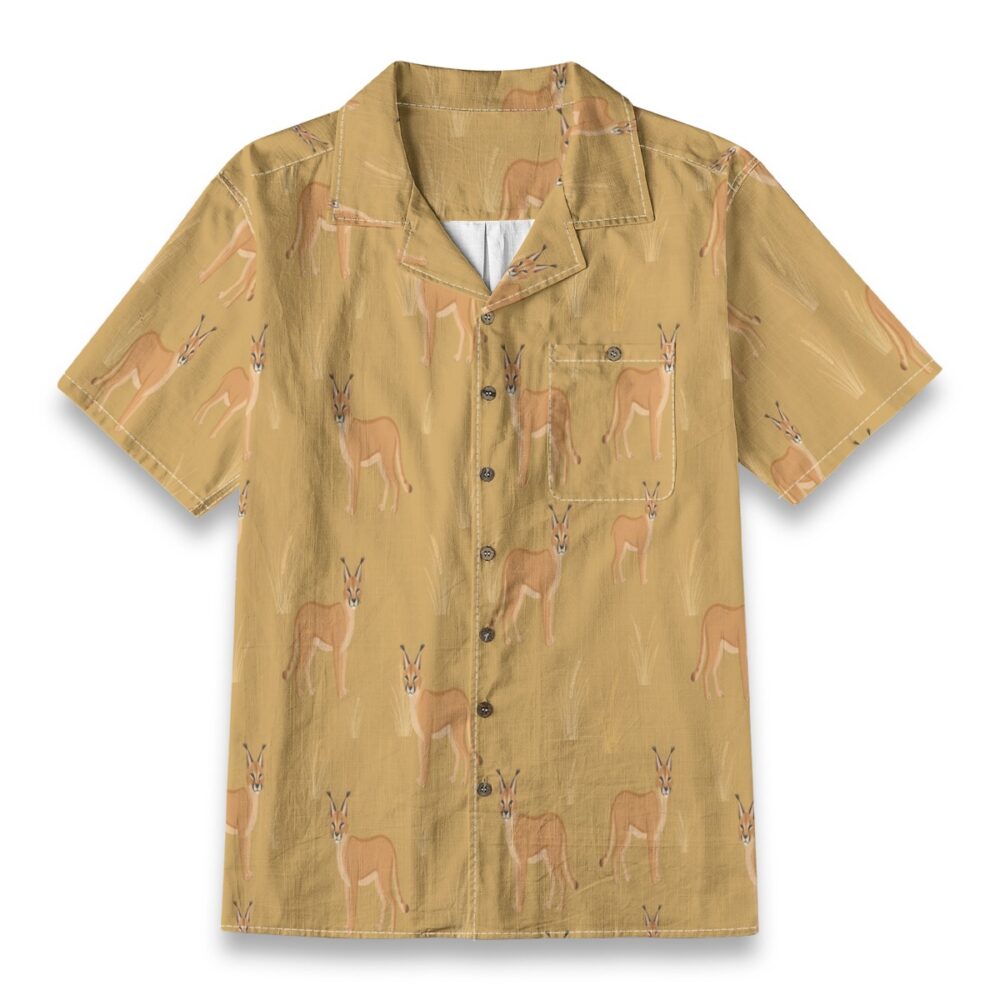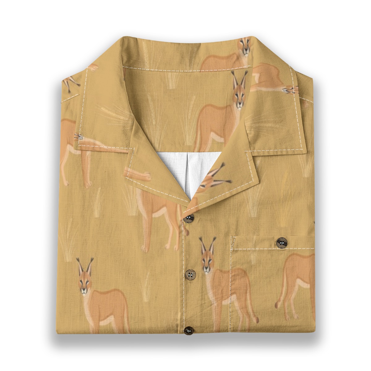 Elegant caracals blend into a warm desert-inspired pattern filled with soft golden tones. The evenly spaced layout creates a smooth rhythm, capturing a wild yet relaxed energy.