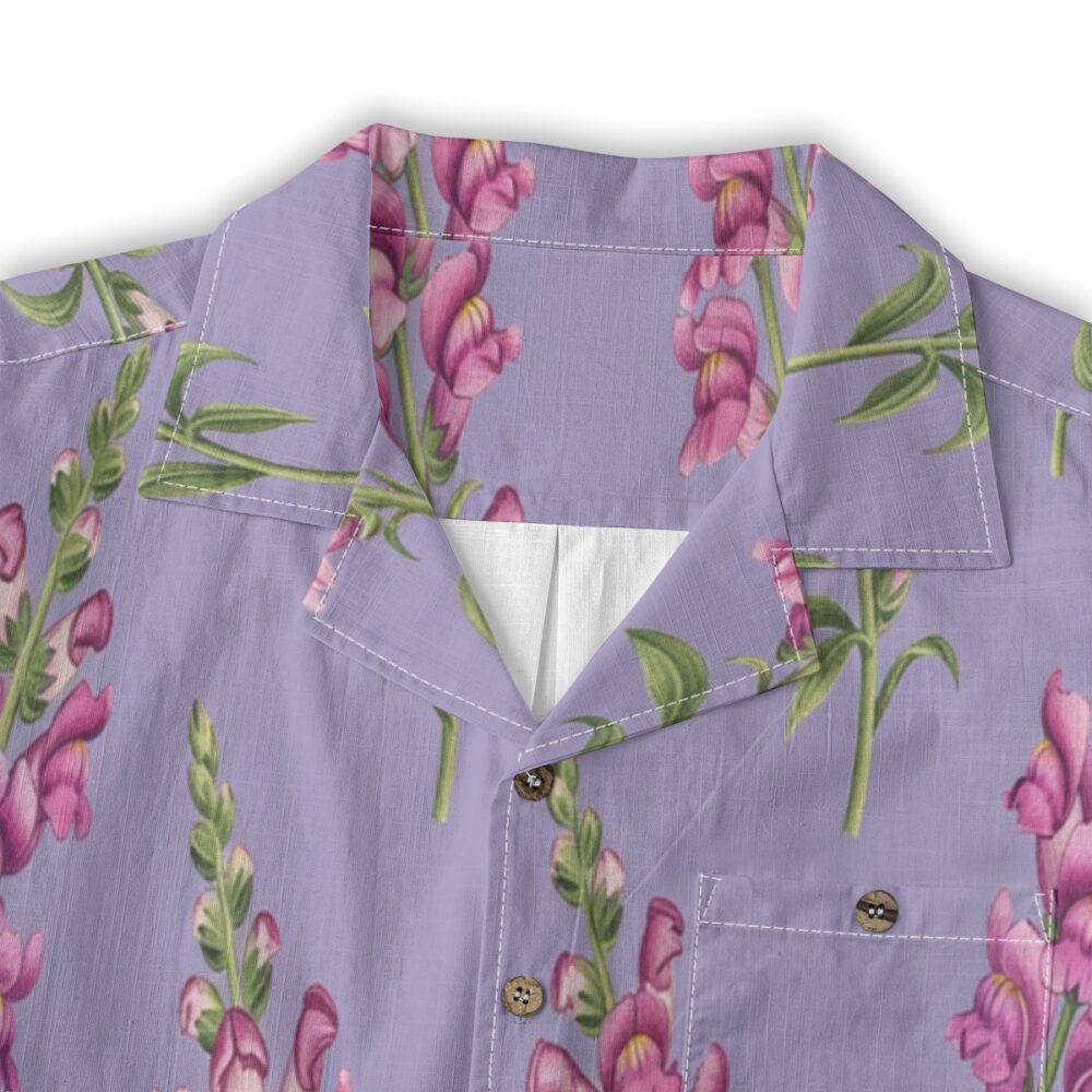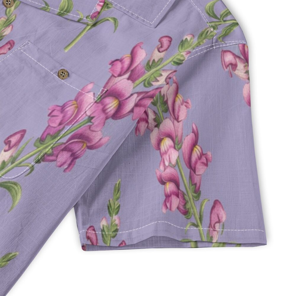 Tall snapdragon blooms bring elegance and height to a soft repeating pattern. Purple tones create a dreamy floral atmosphere full of gentle movement.